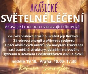 posvátný časoprostor, kde nacházíme přístup k Božské moudrosti, vědění a odpovědi na naše otázky. Ale Akáša je také velice mocnou léčivou dimenzí, kde se skrze otevřené Vědomí a s podporou Akášických světelných bytostí a strážců a mistrů Akáši můžeme otevřít hlubokým prožitkům a ukotvení Božské Zdrojové energie a přijmout navýšení frekvence naší buněčné struktury. Vědomé bytí, spočívání a dýchání v přítomnosti v Akášických energiích přináší hlubokou transformaci, prosvětlení, stabilizaci našeho mnohdy přetíženého nervového systému, podporu a očistu jemno – hmotných energetických těl a harmonizaci a posílení pro orgány a všechny části a funkce našeho těla fyzického.